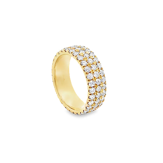 Three Row Round Brilliant-Cut Diamond Eternity Ring in 14K Yellow Gold