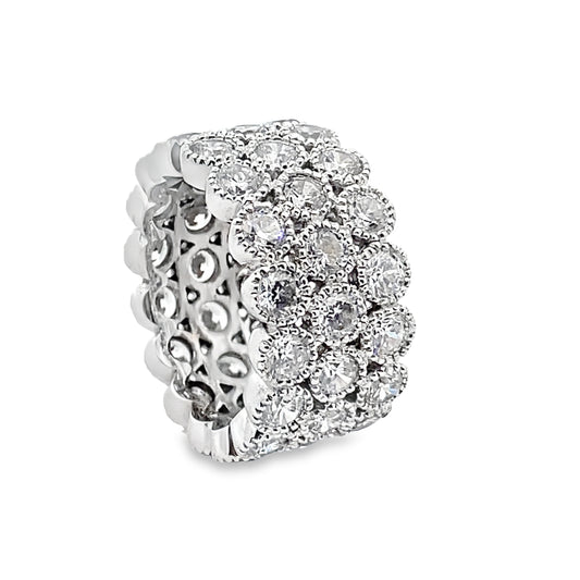 Multi Row Round-Cut Diamond Ring in 14K White Gold