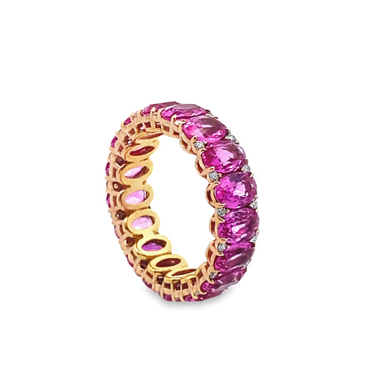 Pink Sapphire and Diamond Eternity Ring in 18K Yellow Gold