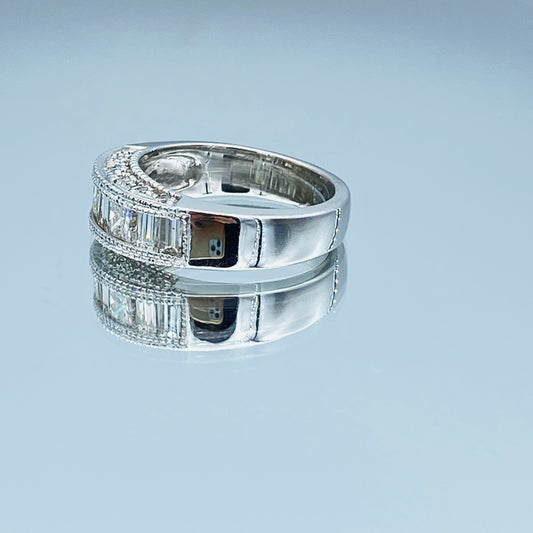 Channel Set Baguette-Cut and Princess-Cut Diamonds Ring in 14K White Gold