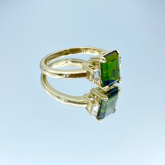 Green Tourmaline and Diamond Ring in 14K Yellow Gold