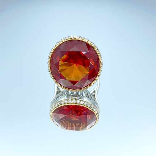 Orange Citrine Ring with a Diamond Halo in Platinum
