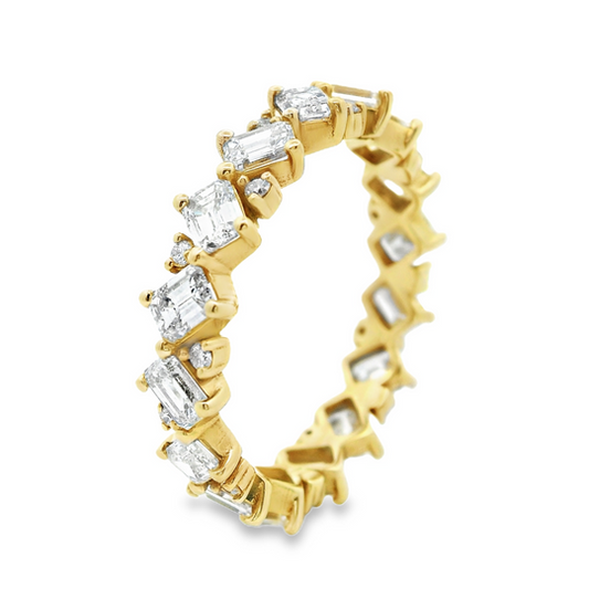 Emerald-Cut and Round-Cut Diamond Eternity Ring in 14K Yellow Gold
