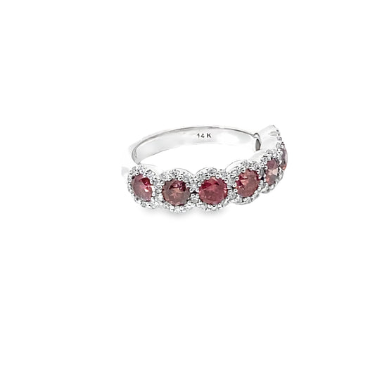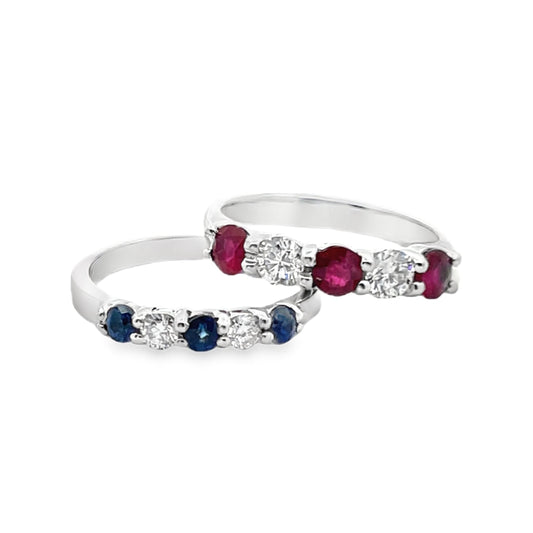 Five-Stone Halfway Round-Cut Sapphire, Ruby and Diamond Ring in 14K Gold