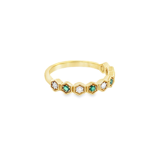 Emerald and Diamond Clover Ring in 14K Yellow Gold