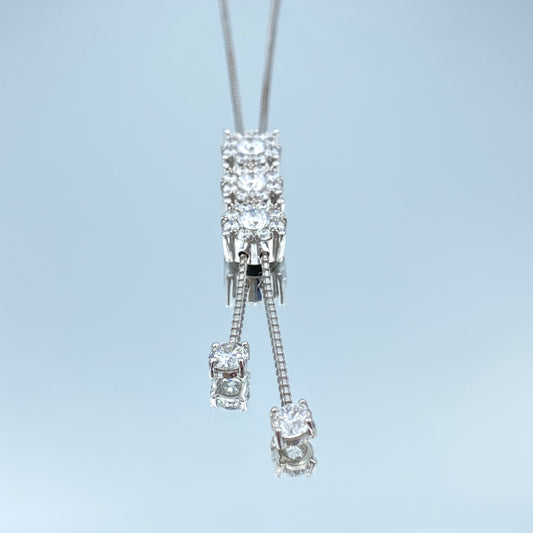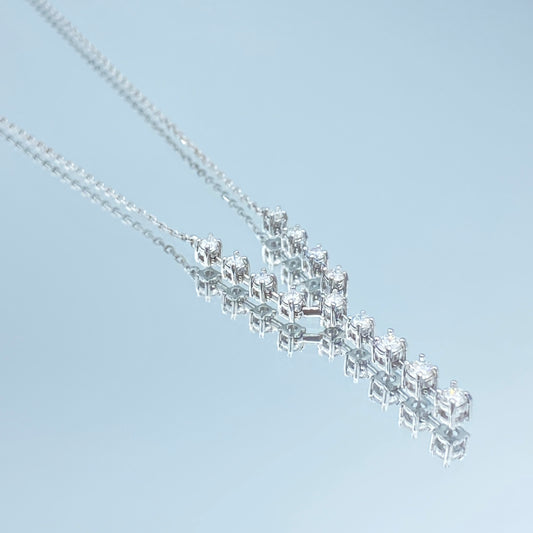 Asymmetric Drop Diamond Necklace in 18K White Gold