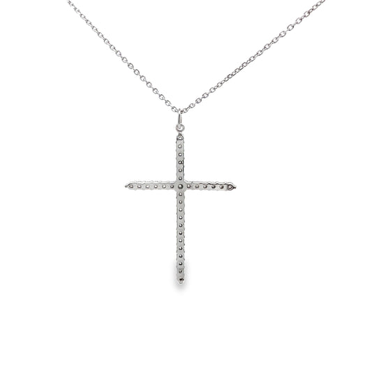 Deep Set Round Cut Diamond Cross Necklace in 14K White Gold