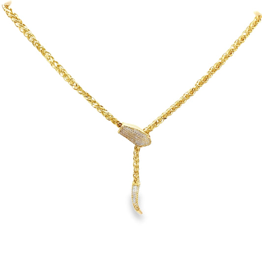 Adjustable Snake Chain Necklace in 14K Yellow Gold with Ruby and Diamonds