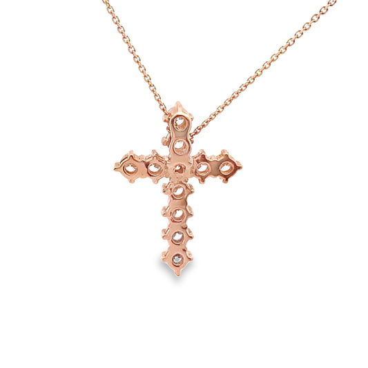 Round Cut Diamond Cross Necklace in 14K Rose Gold