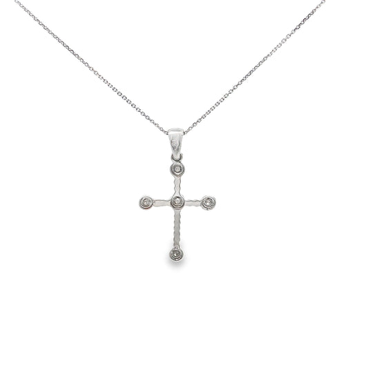 Round Cut Dotted Cross Necklace in 14K White Gold