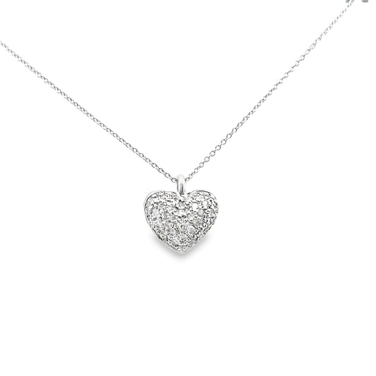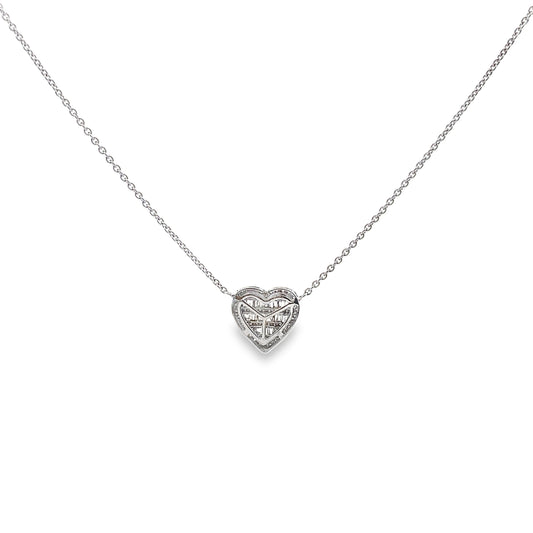 Baguette and Round Cut Diamond Heart Necklace in 14K White Gold