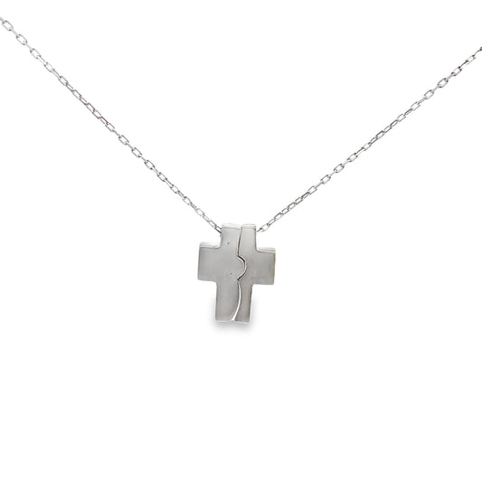 Deep Set Square Cut Diamond Cross Necklace in 14K White Gold