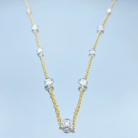 Two-Tone Diamond by the Yard Necklace in 14K Yellow and White Gold