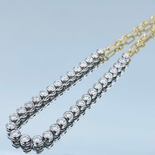 Two Tone Bezel-Set Halfway Diamond Necklace in 14K Yellow and White Gold