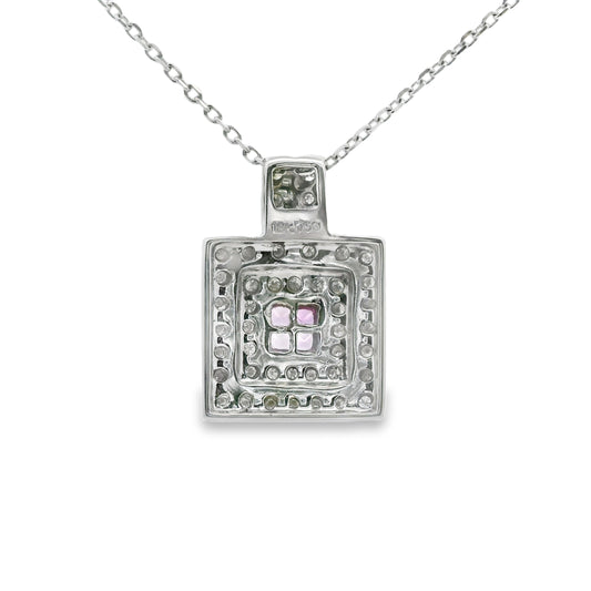 Vintage Style Square Diamond and Pink Sapphire Pendant in 14K White Gold