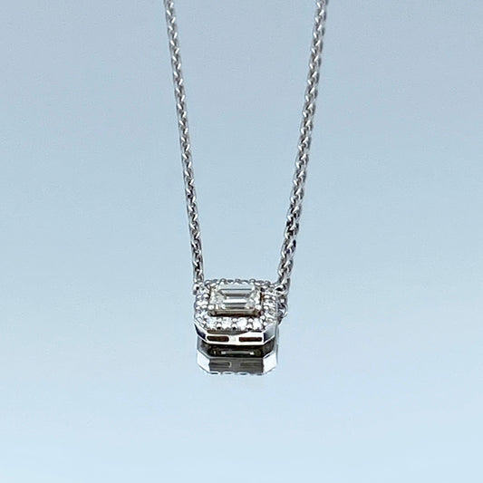 Halo Emerald-Cut Diamond Pendant in 14K White Gold