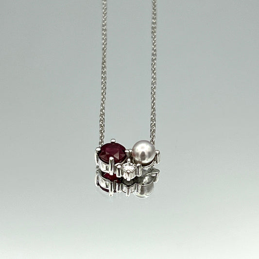 Pearl, Ruby and Diamond Pendant in 14K White Gold