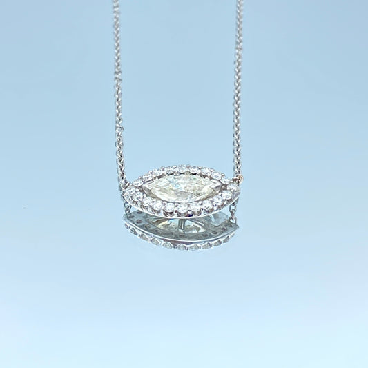 Halo East-West Marquise-Cut Diamond Pendant in 14K White Gold