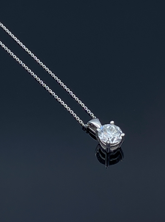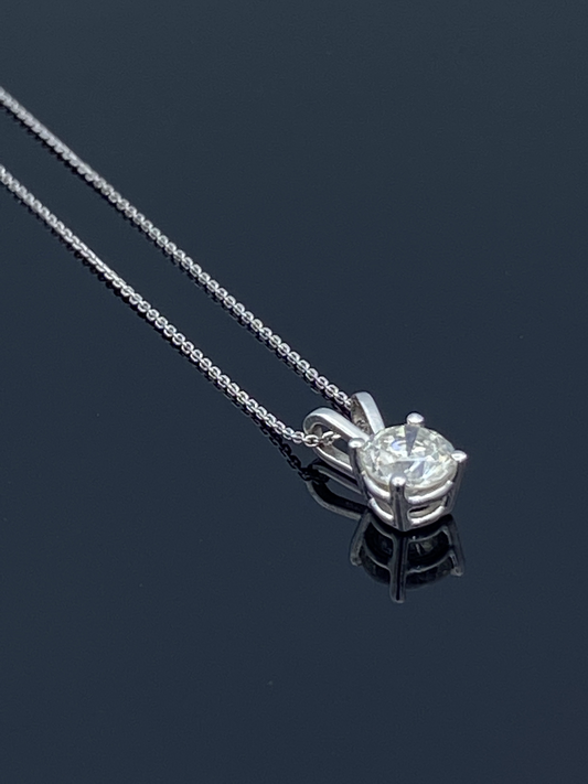 Solitaire Round-Cut Diamond Pendant in 14K White Gold