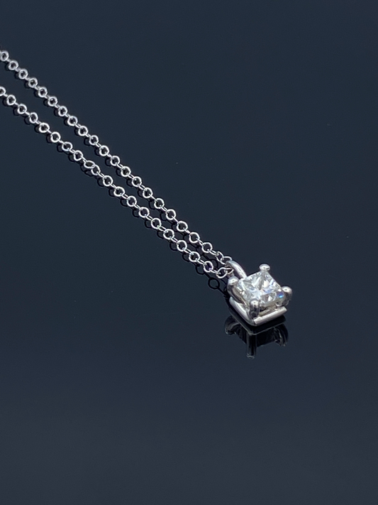 Solitaire Princess-Cut Diamond Pendant in 14K White Gold