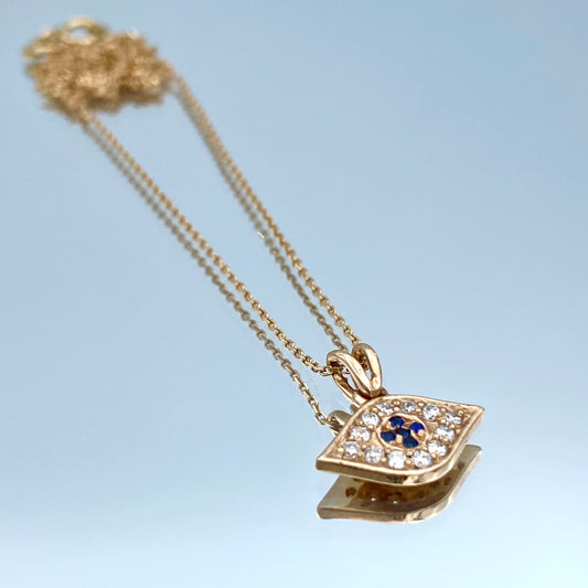Evil Eye Sapphire and Diamond Pendant in 14K Rose Gold