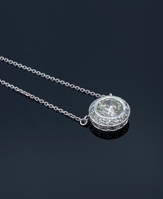 Halo Bezel-Set Round-Cut Diamond Pendant in 14K White Gold