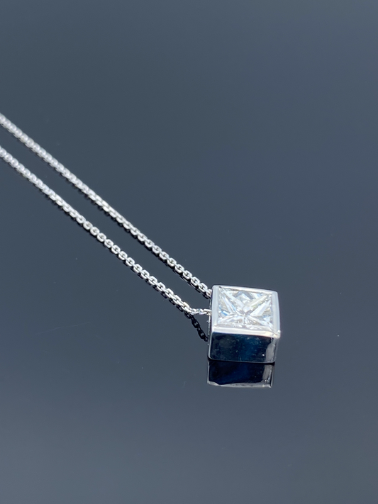 Princess-Cut Bezel-Set Slider Pendant in 14K White Gold