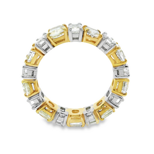 Two-Tone Yellow Diamond and White Diamond Cushion-Cut and Emerald-Cut Eternity Band