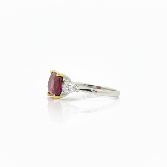 East West Cushion Cut Ruby and Diamond Ring