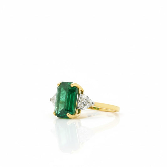 Natural Zambian Green Emerald Ring with Side Heart Diamonds