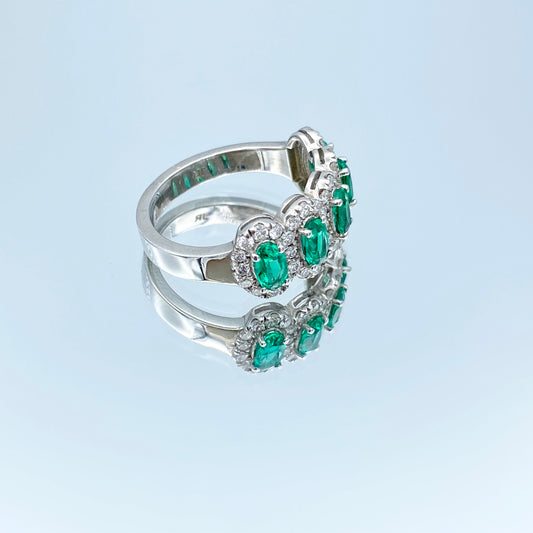 Halo Emerald and Diamond Statement Ring in 14K White Gold