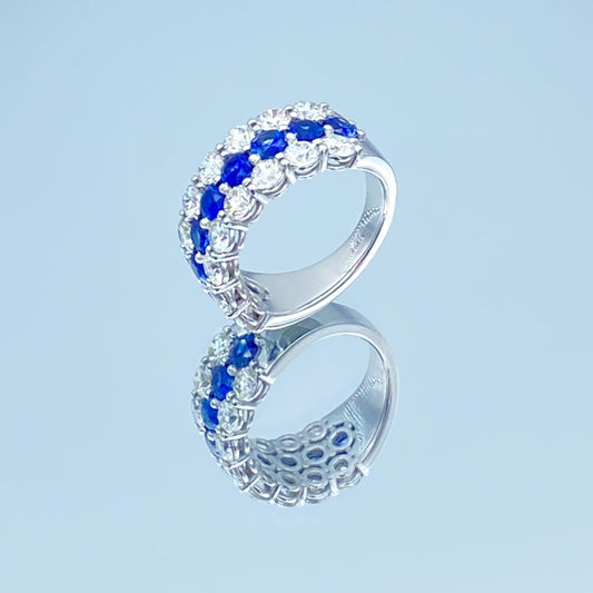 Sapphire and Diamond Three Row Statement Ring in 14K White Gold