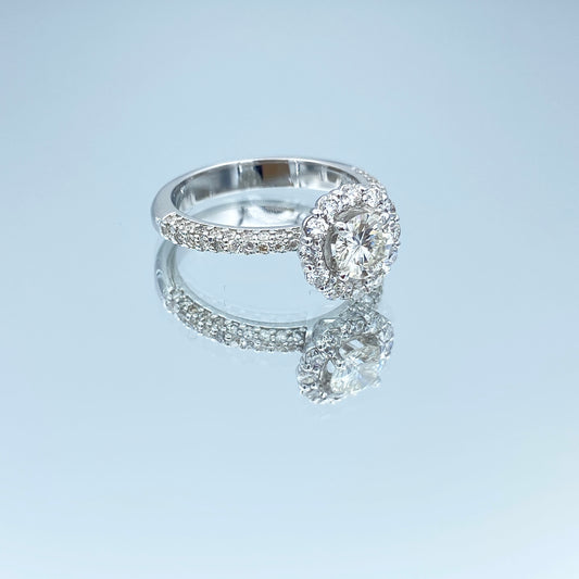 Halo Round Brilliant-Cut Diamond Engagement Ring in 14K White Gold