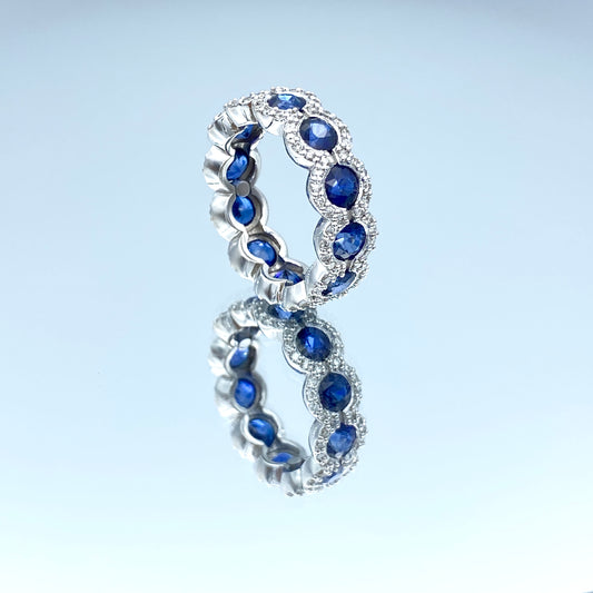 Eternity Sapphire and Diamond Statement Ring in 14K White Gold