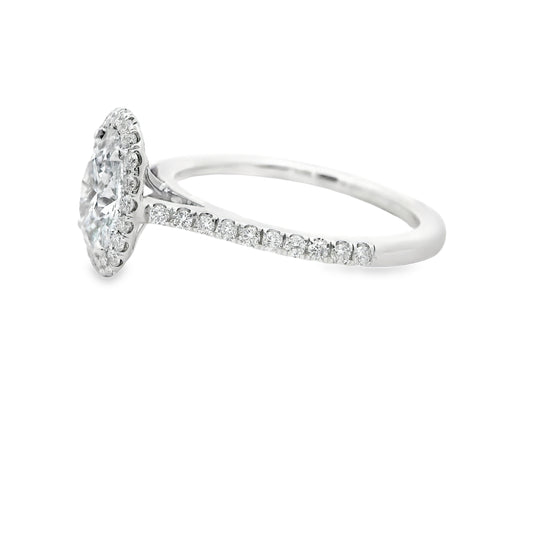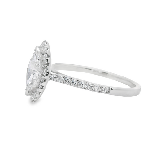 Marquise-Cut with Halo Diamond Engagement Ring in 14K White Gold