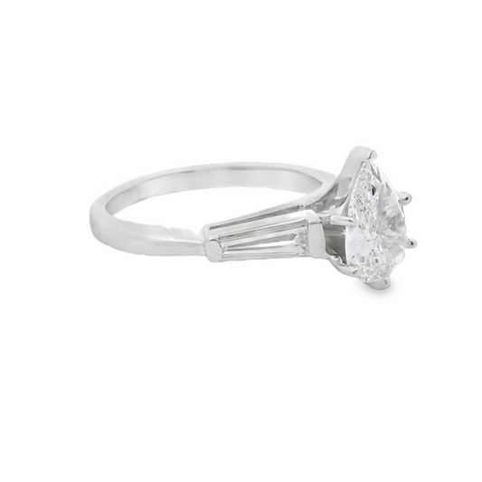 Pear-Shape Diamond Engagement Ring with Tapered Baguette Sides in 14K White Gold
