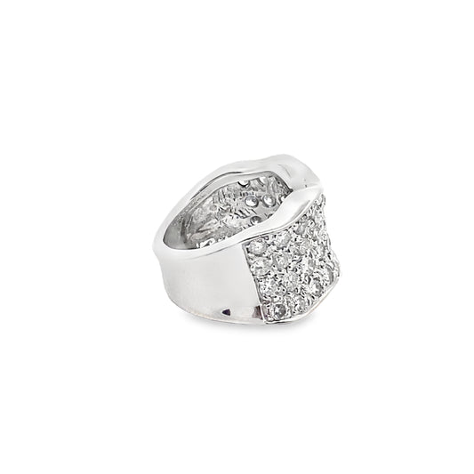 Wide Statement Pave Setting Diamond Ring in 14K White Gold