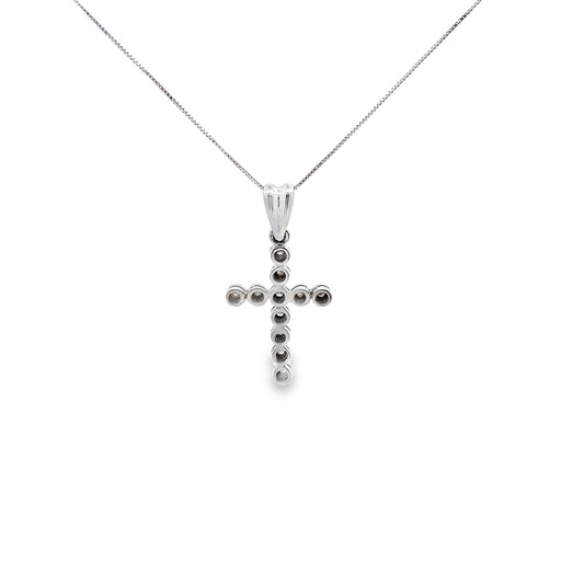 Round Cut Dotted Cross Necklace in 14K White Gold