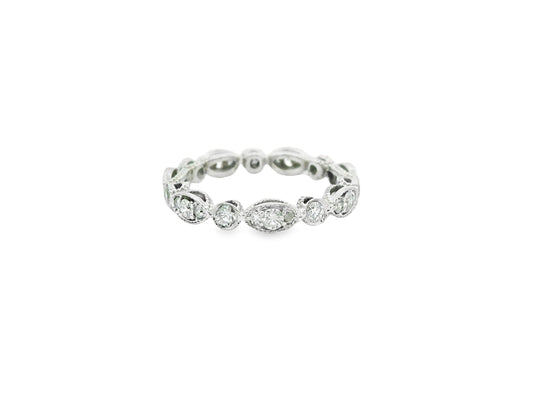 Marquise and Round Cut Vintage Diamond Eternity Band in 14K White Gold