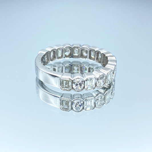 Alternating Emerald-Cut and Oval-Cut Diamond Halfway Eternity Ring in Platinum