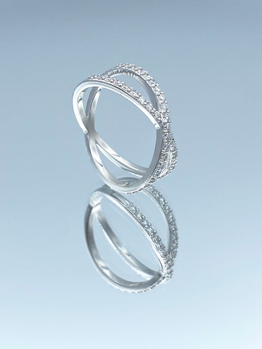 Round Brilliant-Cut Diamond X Ring in 14K White Gold
