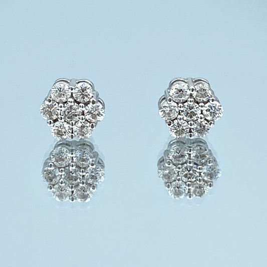 Floral Design Round-Cut Diamond Earrings in 14K White Gold