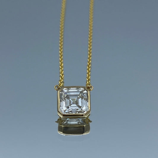 Solitaire Bezel-Set Ascher-Cut Diamond Pendant in 14K Yellow Gold