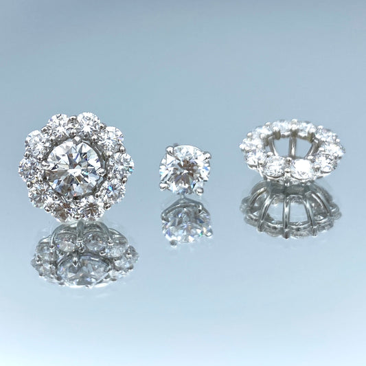 Floral Halo Jacket Diamond Stud Earrings in 14K White Gold