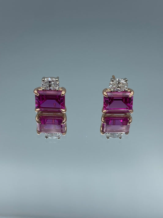 Pink Sapphire and Oval-Cut Diamonds Stud Earrings in 14K Rose Gold