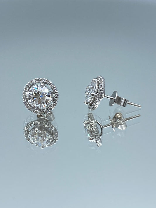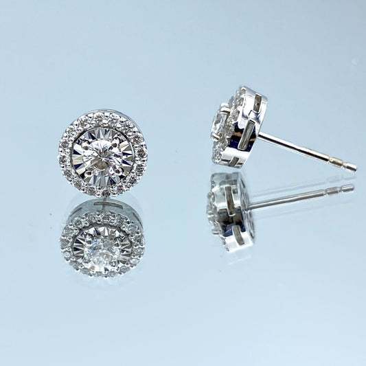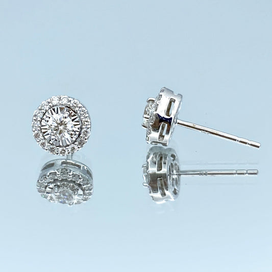 Round Brilliant-Cut Halo Diamond Stud Earrings in 14K White Gold