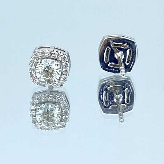 Round Brilliant-Cut Cushion-Halo Round Diamond Stud Earrings in 14K White Gold