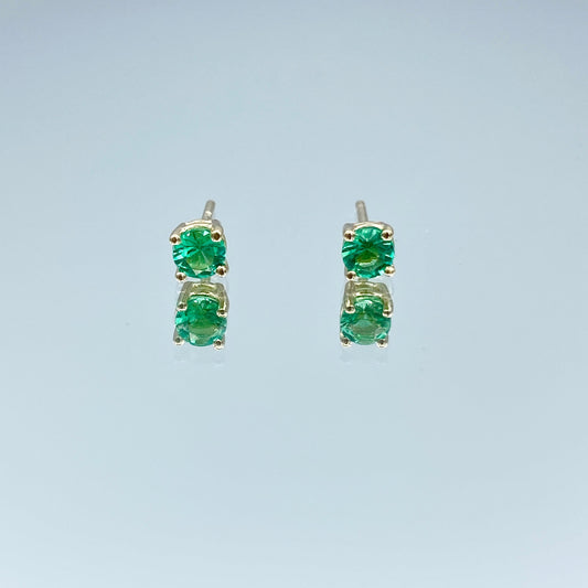 Round-Cut Emerald Stud Earrings in 14K Yellow Gold