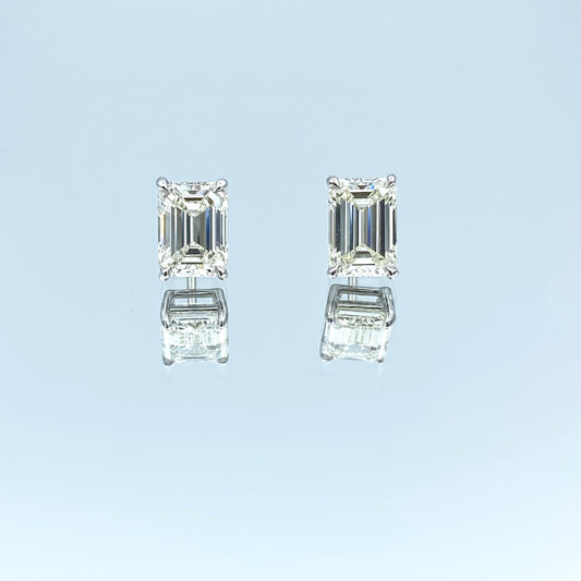 Emerald-Cut Diamond Stud Earrings in 14K White Gold