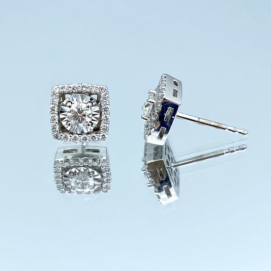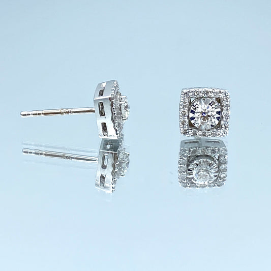 Square Halo Diamond Stud Earrings in 14K White Gold